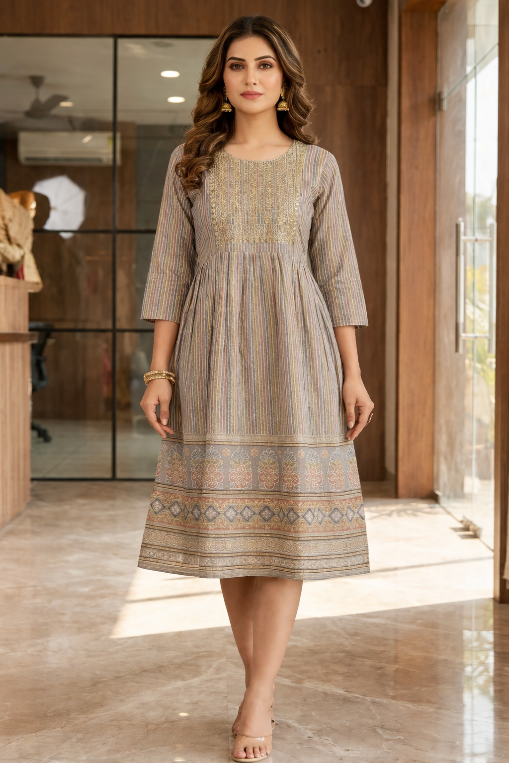 Cotton Stripe Anarkali Kurtis Price and Fabric Details: