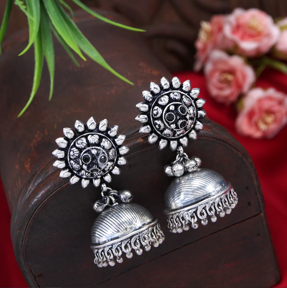 Silver Sunflower Dome Jhumkas
